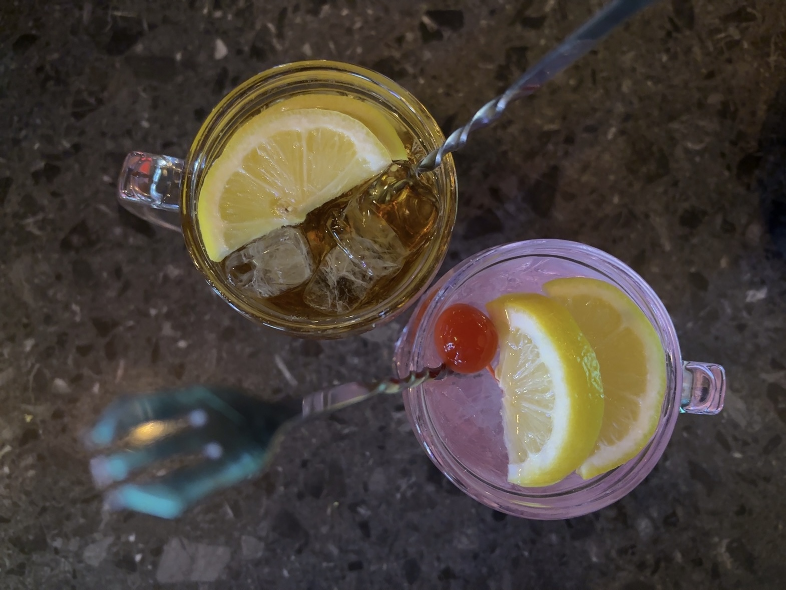 The presentation is absolutely on point! 🌟 There's a cherry perched elegantly atop the Cherry Blossom Highball, and let me tell you, its pink hue is like a feast for the eyes! 🍒💖 Now, when it comes to the Earl Grey Highball, oh boy, the flavor is intense! ☕️🥃 The earl grey is at the bottom, so you've got to give it a good swirl before taking a sip to fully savor it!